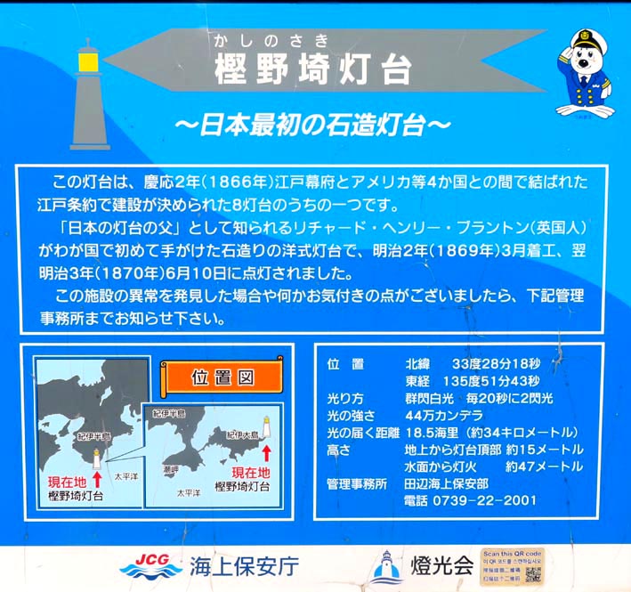 海上保安庁・燈光会の案内板(上記画像3)によれば、樫野埼灯台は、1866年(慶応2年)に江戸幕府とアメリカなど4ヶ国との間で