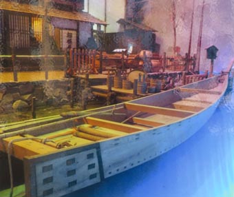 画像2: キャプションには「猪牙舟(再現)」(協力:江東区深川江戸資料館)と記される。山谷堀公園内に設置の「猪牙舟」