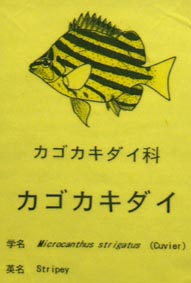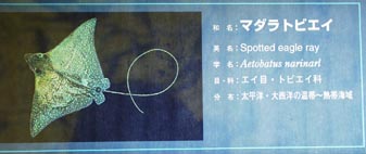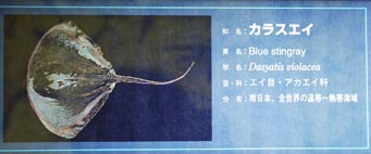 2. カラスエイ [拡大画像(x10043.jpg)] 3. タカクラタツ:ヨウジウオ科 [拡大画像(x10045.jpg)]>[拡大画像(x10044.jpg)] 4. アカヒトデ:ホウキボシ科 [拡大画像(x10047.jpg)]>[拡大画像(x10046.jpg)] 5. アカマンジュウガニ [拡大画像(x10049.jpg)]>[拡大画像(x10048.jpg)] 6. マツカサウオ:マツカサウオ科 [拡大画像(x10051.jpg)]>[拡大画像(x10050.jpg)] 7. オニオコゼ [拡大画像(x10053.jpg)]>[拡大画像(x10052.jpg)] 8. ヒメハナギンチャク:ハナギンチャク科 [拡大画像(x10055.jpg)]>[拡大画像(x10054.jpg)] 9. オトヒメエビ:オトヒメエビ科 [拡大画像(x10057.jpg)]>[拡大画像(x10056.jpg)] 10. アミダコ:1983年、和歌山県太地沖-定置網 [拡大画像(x10058.jpg)] 11. ヒメウミガメ:1976年和歌山県太地沖 [拡大画像(x10059.jpg)]