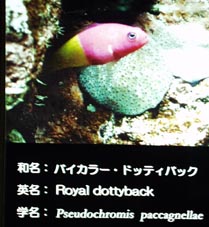 1 2 3 1. ナンヨウハギ [拡大画像(x10078.jpg)] 2. キイロハギ [拡大画像(x10079.jpg)] 3. バイカラー・ドッティバック [拡大画像(x10080.jpg)]