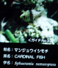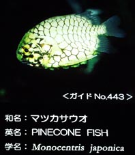 1 2 3 1. マツカサウオ [拡大画像(x10116.jpg)] 2. アカマツカサ [拡大画像(x10117.jpg)] 3. ギマ [拡大画像(x10118.jpg)]