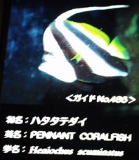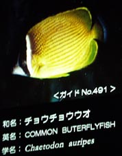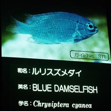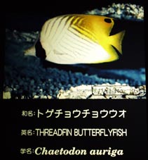 4 5画像なし 6 7 8画像なし 4. マツバスズメダイsmokey damselfish [拡大画像(x10132.jpg)] 5. オキナヒメジJapanese goatfish[拡大画像(x10133.jpg)] 6. チョウチョウウオ [拡大画像(x10134.jpg)] 7. シラコダイ [拡大画像(x10135.jpg)] 8. キンチャクダイ bluestriped angelfish [拡大画像(x10136.jpg)]