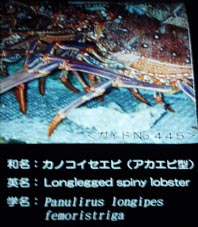 1 2 3 1. フエダイ [拡大画像(x10104.jpg)] 2. カノコイセエビ [拡大画像(x10105.jpg)] 3. 同上-カノコイセエビ [拡大画像(x10106.jpg)]