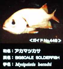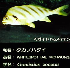 7 8 9 7. ヒガンフグ [拡大画像(x10123.jpg)] 8. イットウダイ [拡大画像(x10124.jpg)] 9. タカノハダイ [拡大画像(x10125.jpg)]