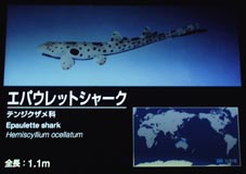 6![]() 1. ツノダシ、キンギョハナダイ [拡大画像(x14278.jpg)] 2. サンゴトラザメ [拡大画像(x14280.jpg)] 3. レパード・キャットシャーク [拡大画像(x14281.jpg)] 4. トラフザメ [拡大画像(x14282.jpg)] 5. レパードシャーク [拡大画像(x14283.jpg)] 6. エパウレットシャーク [拡大画像(x14284.jpg)]