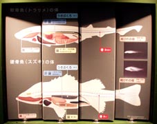2![]() 1. 軟骨魚と硬骨魚の体 [拡大画像(x14719.jpg)][拡大画像(x14720.jpg)] 2. スズキの骨格染色標本 [拡大画像(x14721.jpg)][拡大画像(x14722.jpg)カラスザメの骨格染色標本]