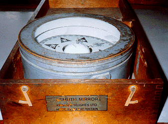 /azimuthally: adv.方位角によって、方位角上. /azimuth angle: 方位角. /azimuth card: 方位盤. /azimuth circle: [羅針盤上の]方位環(ほういかん)、アジマス・サークル [画像: アジマス・サークル]; 方位圏、垂直圏(vertical circle)、 高度の圏(circle of altitude). /azimuth compass: [海・空]方位[測定用]羅針儀、方位羅針盤、方位コンパス [天体等の方位を測定する]. /azimuth mirror: 方位鏡(ほういきょう)、アジマス・ミラー [アジマス・ミラー: 画像(1)&画像(2)]. /azimuth scale: 方位目盛. /azimuth table: 方位表. /azimuth vane: 方位見(ほういみ)、方位矢(ほういや)、風見矢. 2 3![]() 1: アジマス・サークル/2: アジマス・ミラー: 画像(1)/3: アジマス・ミラー: 画像(2)