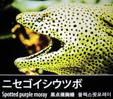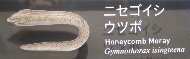 nise-goishi-utsubo[魚]ニセゴイシウツボ: black-spotted moray. honeycomb podge: n.[魚]トゲメギス.