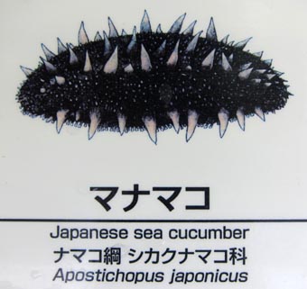 Japanese sea cucumber: n.[動]マナマコ, Apostichopus japonicus [ナマコ綱シカクナマコ科] [画像(z22504.jpg)/葛西水族園][画像(z22505.jpg)/葛西水族園]. Japanese sea lion: n.[動]ニッポンアシカ.