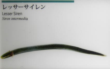 lesser cachalot: n.[動]コマッコウ. lesser dolphin-fish: n.[魚]エビスシイラ. lesser harp shell: n.ヒメショクコウラ. lesser rock shrimp: n.[動]ホソエビ. lesser rorqual: n.[動]コイワシクジラ [ナガスクジラ科のひげ鯨類; ミンククジラともいう](=little piked whale, minke whale). lesser siren: n.レッサー・サイレン, Siren intermedia [画像 (z22109.jpg)/京都水族館]. lesser soupfin shark: n.[魚]ツマグロエイラクブカ. lesser thrush-eel: n.[魚]ハリガネウミヘビ. lesser wolf herring: n.[魚]オオクチサイトウ.