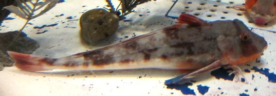 red gurnard: n.[魚]ホウボウ、ホウボウの類 [画像(z22376.jpg)/しながわ水族館]