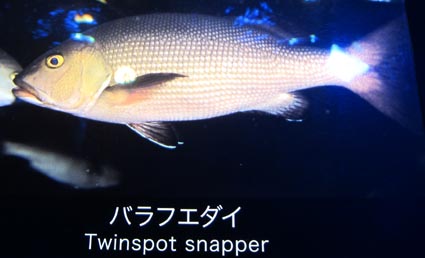 twinspot snapper: n.[魚]バラフエダイ [画像(z22390.jpg)/しながわ水族館]. twin trawl: n.[英語]=two-boat trawl [net].