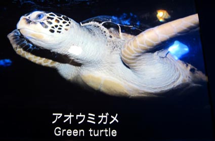 aoumigame[動]アオウミガメ、青海亀(あおうみがめ): green turtle, [学名]Chelonia mydas mydas (Linnaeus, 1758)