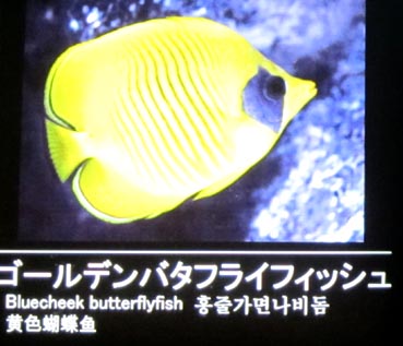go-ruden-batafuraifisshu[魚]ゴールデン・バタフライフィッシュ: bluecheek butterflyfish [画像(z22187.jpg)/サンシャイン水族館]. go-ruden-sutoraipudo-batafurai[魚]ゴールデン・ストライプド・バタフライ: golden striped butterflyfish, [学名]Chaetodon aureofasciatus.