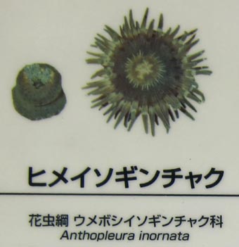 himehoshi-dakara-gai[貝]ヒメホシダカラ貝: lynx cowry. hime-igai[貝]ヒメイガイ: Japanese bifurcate mussel. hime-ika[動]ヒメイカ: pygmy squid[世界最小級のイカとして知られる] [参考]リュウキュウヒメイカ(通称): [学名]イディオ セピウス キジムナー/ツノヒメイカ(通称): [学名]コダマ ジュウジュツ. hime-isoginchaku[動]ヒメイソギンチャク: Anthopleura inornata [花虫綱ウメボシイソギンチャク科] [画像(z22514.jpg)/葛西水族園]. hime-itomaki-ei[魚]ヒメイトマキエイ: pigmy devil ray.
