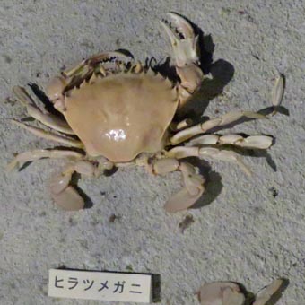 hirahana-aji[魚]ヒラハナアジ: longnose cavalla. hirahomora[動]ヒラホモラ: [ヒラホモラ:画像(z22657.jpg)/平戸市生月町博物館・島の館]. hira-isogani[動]ヒライソガニ: [英名など調査中; 十脚目イワガニ科; 日本各地の他、台湾・韓国・中国の岩礁に棲む; 岩や小石のある磯に多くみられる最も普通のカニ]. hiraitoyori[魚]ヒライトヨリ: butterfly bream. hira-ka[魚]ヒラ科: [注釈: 学名など調査中です]. hirakaramatsu[貝]ヒラカラマツ: flatten siphon shell.