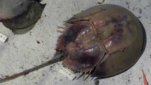 kabuto-gani[動]カブトガニ: helmet crab, horseshoe crab, king crab [カブトガニ: