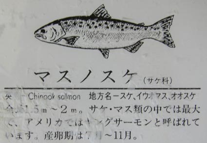 masunosuke[魚]マスノスケ: chinook salmon; Chinook, Chinook salmon; king salmon; quinnat salmon, [学名]Oncorhychus tshawytscha [サケ科; 米国ではキングサーモンと呼ばれる].