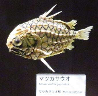 matsukasa-uo[魚]マツカサウオ: [米国・フィリピン]pine-cone fish, pineconefish [学名]Monocentris japonica (Houttuyn)