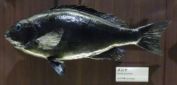 mejina[魚]メジナ(目仁奈): greenfish, nibbler, rudder fish, [学名]Girella punctada Gray [メジナ科(Girellidae)