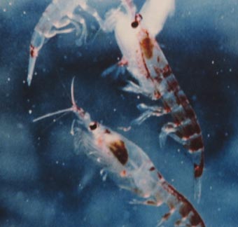 [文例] In living resources, krill(small crustaceans) are currently focal point for international attention.: 生物資源としては、オキアミ(小さい甲殻類動物)が最近国際的関心の的になっている. /krill catching: オキアミの漁獲(→ fishing, harvesting).
