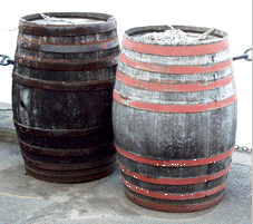 /boat breaker: [救命]ボート(短艇)用の飲料水のための樽(たる)・水樽. /breaker: n.[海][小舟・救命ボートなどに積み込む飲料水用の]水樽、水だる; 船の飲料用水樽. /daunt: vt.[英国][塩漬けのニシンを]樽に押し詰める. /gang cask: n.[海]小型水樽. /keg: n.[5~10ガロン入りの]小樽(こたる); 木製樽形の小さい浮子、ぼんでん浮子(→ cask). /keg buoy: n.樽(たる)浮標[樽に旗竿などを取り付けたもの; 漁網や捕獲用トラップなどの位置を示す]. /to strike down: v.[魚]を樽詰めにして貯蔵する、樽詰めにする; 打ちのめす.