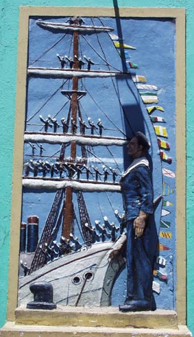 /man the yard: 登檣礼する[横帆船の帆桁上に一列に並んで行うもの](→ 登桁礼、登舷礼) [画像参照: 登檣礼・登桁礼; アルゼンチン・ブエノスアイレス市・ボカ地区カミニート通りで見かけたレリーフ].