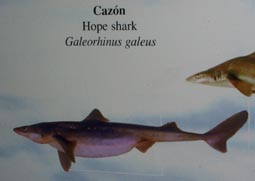 Galeorhinus galeus: [西語: アルゼンチン]cazón [英語]hope shark [画像]. Galeus eastmani: ヤモリザメ(ガイコツザメ). Galidae: [注釈: 目下、日本語名などを調べています]. Galaxiidae: [注釈: 目下、日本語名などを調べています].