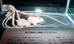 [頭足綱・八腕目・アオイガイ科; カイダコともいう; 太平洋の温帯から熱帯域に棲息する; 雌は薄い紙のような殻をもつ;