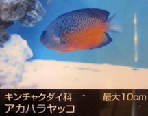 akahimeji[魚]アカヒメジ: akahire-ishimochi[魚]アカヒレイシモチ: redfin cardinalfish, [学名]Apogon rhodopterus Bleeker [テンジクダイ科]. akahire-tabira[魚]アカヒレタビラ: rock bitterling, rice chul, [学名]Acheilognathus tabira subsp. [コイ科の淡水魚]. akahitode-yadorinina[動]アカヒトデヤドリニナ: [学名]Stilifer akahitode[ハナゴウナ科]. akahoshi-kakure-ebi[動]アカホシカクレエビ: [学名]Periclimenes sp.[テナガエビ科]. akahoshi-kanidamashiアカホシカニダマシ: [学名]Neopetrolisthes maculatus. akahoshi-kitsunebera[魚]アカホシキツネベラ: whitespotted hogfish, [学名]Bodianus luteopunctatus (Smith) [ベラ科]. akaigareishi[貝]アカイガレイシ: [学名]Drupa rubuscaesius (Ro"ding) [アツキガイ科の巻貝].