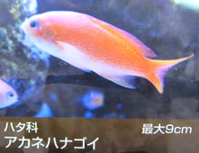 akahara-yakko[魚]アカハラヤッコ: [学名]Centropyge ferrugatus. akahata[魚]アカハタ: black-tipped rock-cod, banded reef-cod, [学名]Epinephelus fasciatus [ハタ科]. akahata-modoki[魚]アカハタモドキ: red-tipped rock-cod, [学名]Epinephelus truncatus Katayama [ハタ科]. akahaze[魚]アカハゼ: pinkgray goby, [学名]Chaeturichthys hexanema Bleeker [ハゼ科]. akahige-kakure-ebi[動]アカヒゲカクレエビ: [学名]Vir smiti[テナガエビ科].