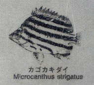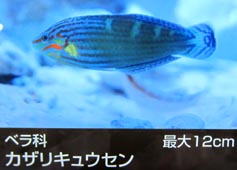 kayamonori[藻]カヤモノリ: [学名]Scytosiphon lomeutarius A Agardh [カヤモノリ目・カヤモノリ科の褐藻類]. kazagurumabora[貝]カザグルマボラ: armed whelk, [学名]Tudicla spinosa (H. et A. Adams) [オニコブシ科の巻き貝]. kazari-akabou[魚]カザリアカボウ: ornate hogfish, [学名]Verro pacificus Kamohara [ベラ科]. kazari-dama[貝]カザリダマ: painted moon shell, [学名]Notocochlis picta (Rècluz) [タマガイ科の巻き貝]. kazari-haze[魚]カザリハゼ: barred green goby, barred ornate goby, [学名]Acentrogobius ornatus (Rüppell) [ハゼ科]. kazari-isoginchaku-ebi[動]カザリイソギンチャクエビ: [学名]Periclimenes ornatus [テナガエビ科]. kazari-kinchakufugu[魚]カザリキンチャクフグ: Bennett's toby, Bennett's puffer, roseband toby, [学名]Canthigaster bennetti (Bleeker)[フグ科].