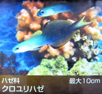 kuroyurihaze[魚]クロユリハゼ: blackfin gudgeon, [学名]Ptereleotris evides (Jordan et Hubbs)[ハゼ科]. kurozamemodoki[貝]クロザメモドキ: ivory cone, [学名]Lithoconus eburneus (Hwass)[イモガイ科の巻き貝]. kurodukeamagai[貝]クロヅケアマガイ: pitchy nerite, [学名]Retina picea (Rècluz)[アマオブネガイ科の巻き貝]. kurodukegai[貝]クロヅケガイ: [学名]Mondonta neritoides (Philippi)[ニシキウズ科の巻き貝]. kurumadai[魚]クルマダイ: big-eye porgy, Japanese big-eye, [学名]Pristigenys niphonia (Cuvier) [キントキダイ科].