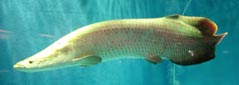 [オステオグロッスム科; 世界最大の有鱗魚; 南米アマゾン河流域に分布する。体長2mほど、体重400kgに達する世界最大級の淡水魚。