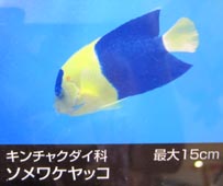 sokogisu[魚]ソコギス: longnose tapirfish, [学名]Polyacanthonotus challengeri (Vaillant)[ソコギス科]. sokoharigochi[魚]ソコハリゴチ: spiny flathead, [学名]Hoplichthys gilberti Jordan et Richardson [ハリゴチ科]. sokohoubou[魚]ソコホウボウ: spottyback searobin, [学名]Pterygotrigla hemisticta (Temminck et Schlegel) [ホウボウ科]. sokoitoyori[魚]ソコイトヨリ(キイトヨリ): [米国・カナダ]yellow-belly threadfin-bream, [豪・NZ]butterfly-bream, [学名]Nemipterus bathybius Snyder [イトヨリ科]. sokokajika[魚]ソコカジカ: blackbreast sculpin, [学名]Zesticelus bathybius (Günter)[カジカ科]. sokokakureuo[魚]ソコカクレウオ: toothed pearlfish, [学名]Carapus awasiannus Matsubara [カクレウオ科]. sokokanagashira[魚]ソコカナガシラ: abyssal searobin, [学名]Lepidotrigla abyssalis Jordan et Starks [ホウボウ科]. sokokawamuki[魚]ソコカワムキ: lined spikefish, [学名]Tydemania navigatoris Weber [ベニカワムキ科]. soko-kihoubou[魚]ソコキホウボウ: narrowhorn crocodilefish, [学名]Satyrichthys engyceros (Günter) [チゴダラ科]. sokokurodara[魚]ソコクロダラ(ヒゲダラ): squirrel-hakeling, [学名]Lepidion inosimae (Günther)[チゴダラ科]. sokokurogisu[魚]ソコクロギス: [参照]クロソコギス. sokomatoudai[魚]ソコマトウダイ: bigeye dory, [学名]Zenion japonicum Kamohara [マトウダイ科]. sokomedamauo[魚]ソコメダマウオ: searcher, [学名]Bathymaster signatus Cope [メダマウオ科]. sokonibe[魚]ソコニベ: [参照]オオニベ. sokonumeri[魚]ソコヌメリ: sailfin dragonet, [学名]Callionymus sokomurai Kamohara [ネズッポ科]. sokosumiyaki[魚]ソコスミヤキ: [参照]トウヨウカマス. sokotoragisu[魚]ソコトラギス: cross-stitch weever, [学名]Parapercis okamurai Kamohara [トラギス科]. somewakebera[魚]ソメワケベラ: black-and-yellow wrasse, [学名]Labroides bicolor Fowler et Bean [ベラ科]. somewakeguri[貝]ソメワケグリ: Reeve's dog cockle, [学名]Glycymeris reevei (Mayer)[タマキガイ科の巻き貝]. somewakemategai[貝]ソメワケマテガイ: Lamarck's razer shell, [学名]Solen lamarckii Sowerby [マテガイ科の二枚貝]. somewake-oriirebora[貝]ソメワケオリイレボラ: two colored nutmeg, [学名]Trigonaphera bicolor (Hinds) [コロモガイ科の巻き貝].