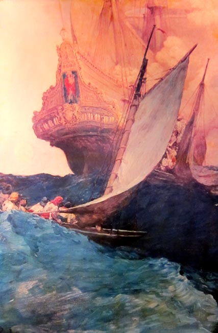 ガレオン船を襲撃する海賊船長バーソロミュー・シャープとその 部下たち(絵画) [カナダ・バンクーバー海洋博物館]