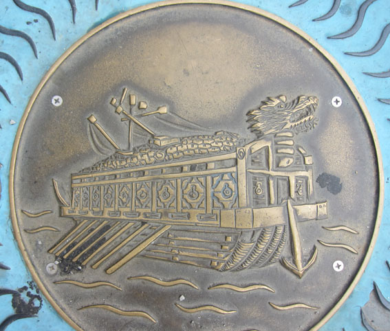亀甲船を図案化したマンホールの蓋/李舜臣将軍ゆかりの地・ 統営