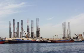 組み立て・修理などを行うヤードがある。アラビア湾は水深が浅く、またサイクロンなどもなく、
