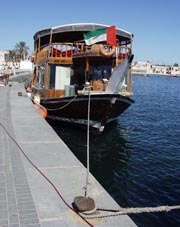 写真は、サイード博物館近くの岸壁に繋留された観光用ダウ。