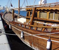 ア首連ドバイのクリークの岸壁で出会った一艘の小型ダウ。
