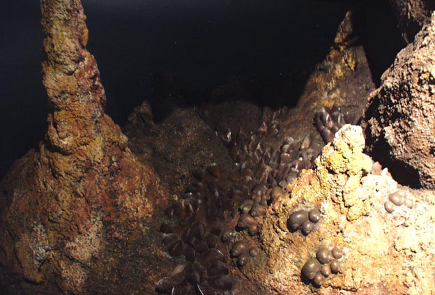 1970年代以来、チムニーの周辺では硫化水素を摂取して生きるいろいろな深海生物が発見されてきた。