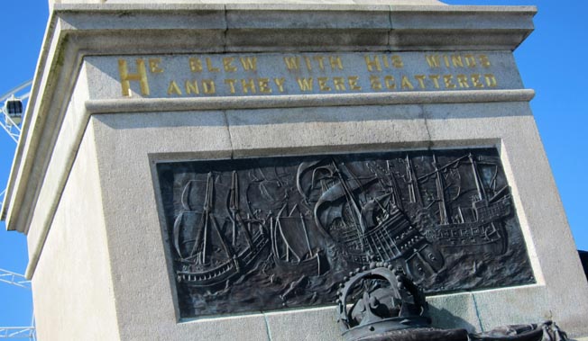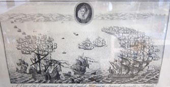 the Start Point near Plymouth」(プリモス近くの沖を出発点とした英国艦隊とスペイン無敵艦隊との戦い)と記されている。