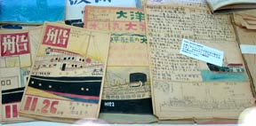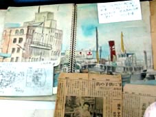 駆け出そうとしていた頃に描いた船のスケッチや絵の数々、高校生~大学生当時の手描きによる船の同好会機関誌「波涛」、その他若き頃に