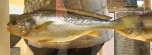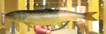 博物館には21種におよぶ練り製品製造原料魚のレプリカが展示されている。画像はその中でも代表的な原料魚であるスケトウダラである。