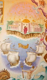 人物画像である。壁面には、ヴァイキングのレイフ・エリクソンの他、コロンブス、マジェラン、