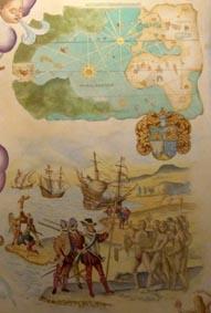 レーション⌋の壁面に描かれた、クリストファー・コロンブスの人物画である。壁面には、