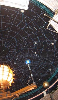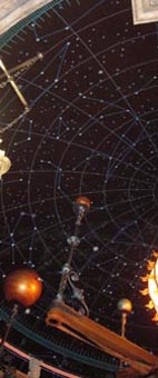 星座が散りばめられ、その下に輝きを放つ太陽が鎮座する。そして、太陽の周りに配された地球や火・水・木星などの惑星模型が周回する