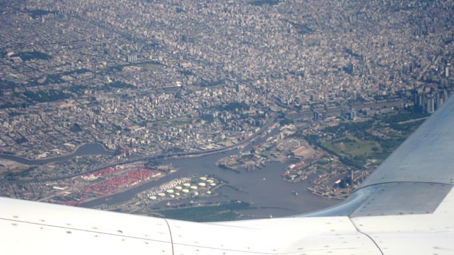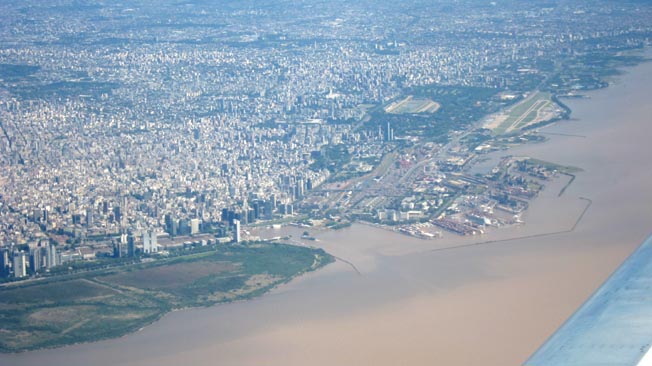 画像1: 画像中央下部に見える大きな水域がブエノス・アイレス港内へ通じる一つのアクセス