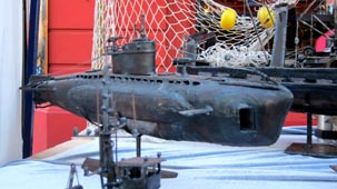 他にも沿岸小型漁船、潜水艦などが並んでいる。「おじさん、どうも"Muchas gracias! Tenga suerte!" (大変ありがとう。