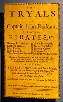 海賊の掟では女性の海賊船への乗り込みはご法度であったが、彼女は男装して乗り込んだ。 他方、ラッカムによって襲撃を受けた船の乗組員の中には、彼の海賊稼業に加わる者もいた。そんな中に、男装していたメアリー・リード という女海賊がいた。ラッカムは、後になって2人が女性であることを他の船員に公表し、そのまま共々に海賊稼業を続けることとなった。 1720年10月、ラッカムの海賊船が、バハマ総督から派遣されたジョナサン・バレットによって捕獲された。その時、男海賊は熾烈な闘い に挑んだわけではなかったが、アンとメアリーは最後まで抵抗したという。 ラッカムらの男海賊に対する1720年11月16・17日における裁判での死刑判決とは別に、同年11月28日にアンとメアリーに対する裁判が行われ、 死刑が宣告された。しかし、2人は自身の妊娠を主張したことから、当時における中絶忌避の慣習・建前に基づき、刑の執行は出産後まで 延期されることとなった。 メアリーは1721年刑務所内で熱病で死亡 (刑が執行されたという記録はないという)、アンのその後は知られていない。 説明パネルでは、アン・ボニー&メアリー・リードについて次のように記されている。